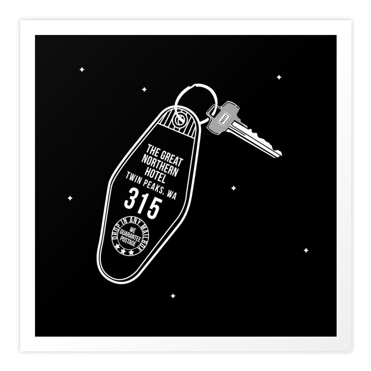 While the key featured in today’s art is from Season 3, the original Room 315 key looks slightly different. It’s best seen in Episode 1007 just before Cooper reenters his room for the night.