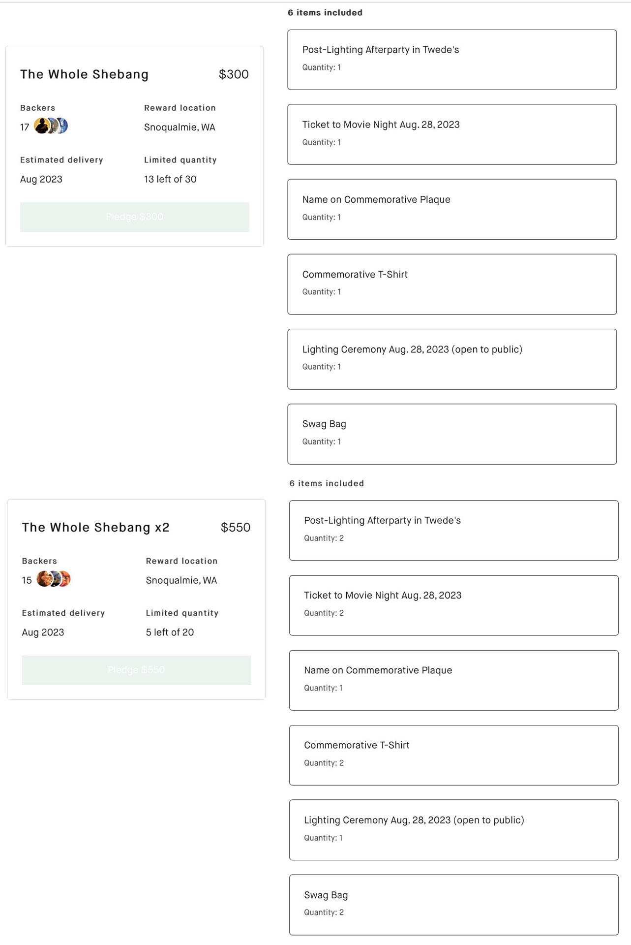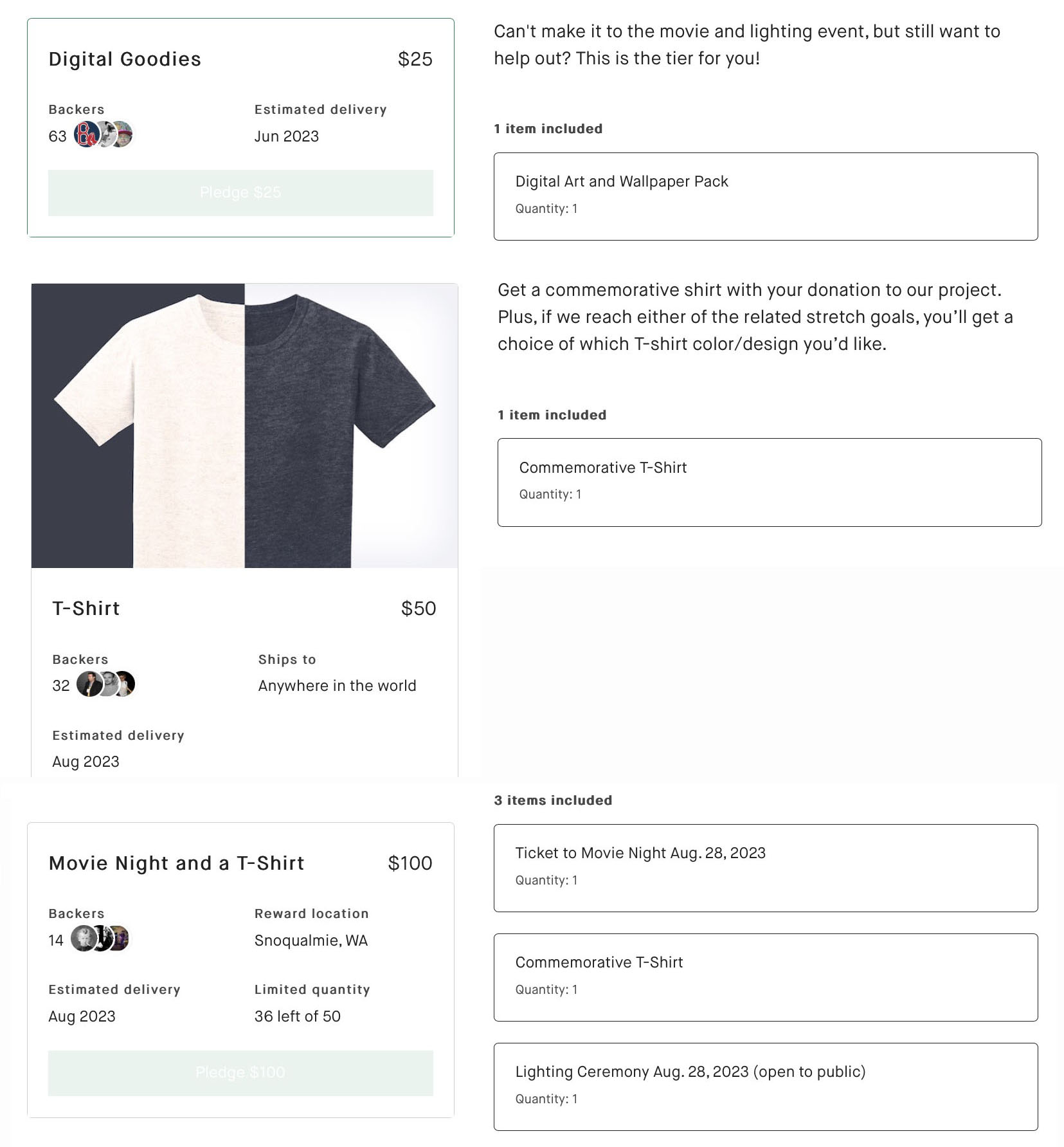 Below is a list of available rewards from the campaign.