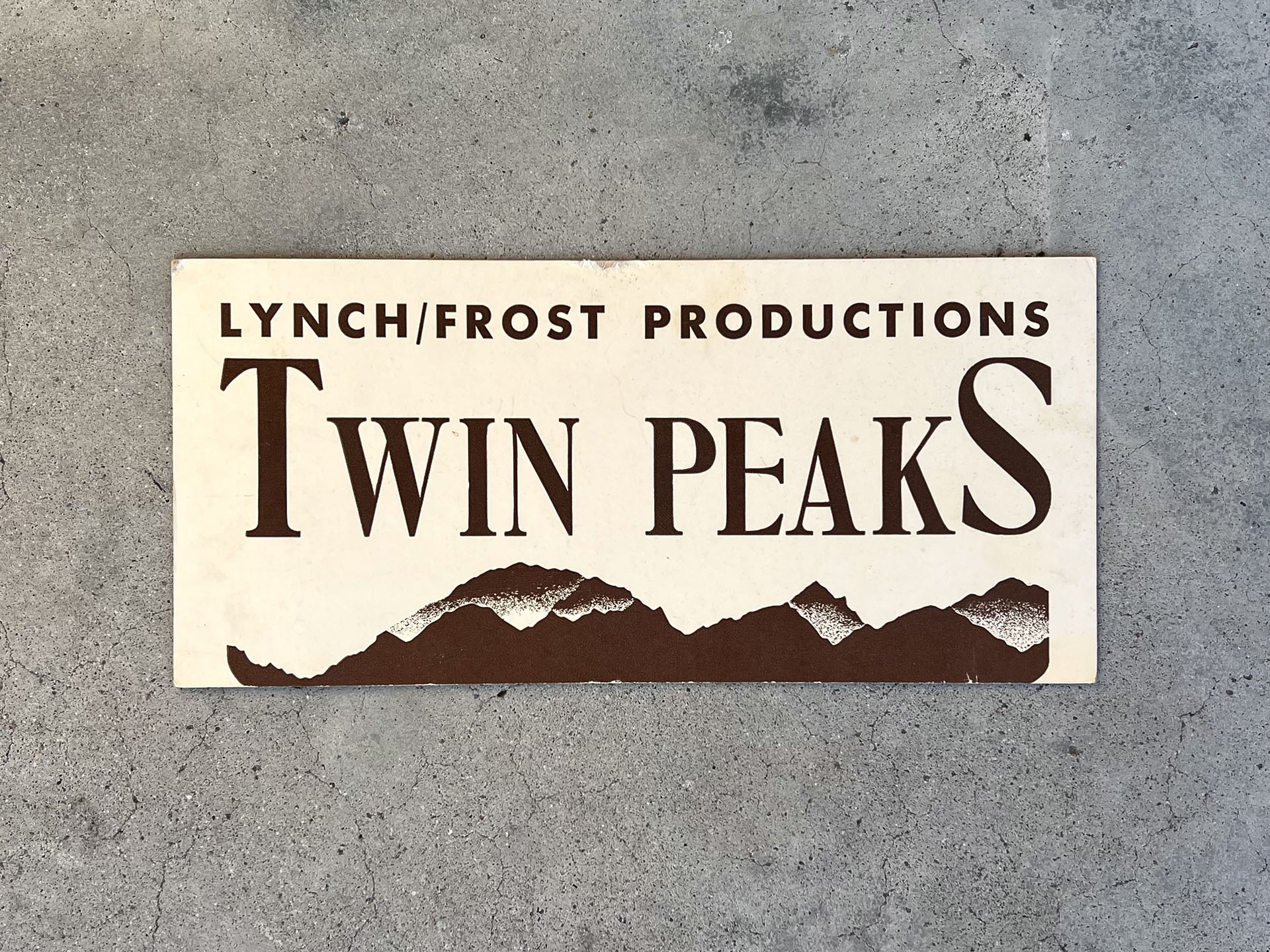 After the series wrapped, a similar placard was made for the cast and crew of Twin Peaks: Fire Walk With Me featuring the same distinct font and mountain range graphic.