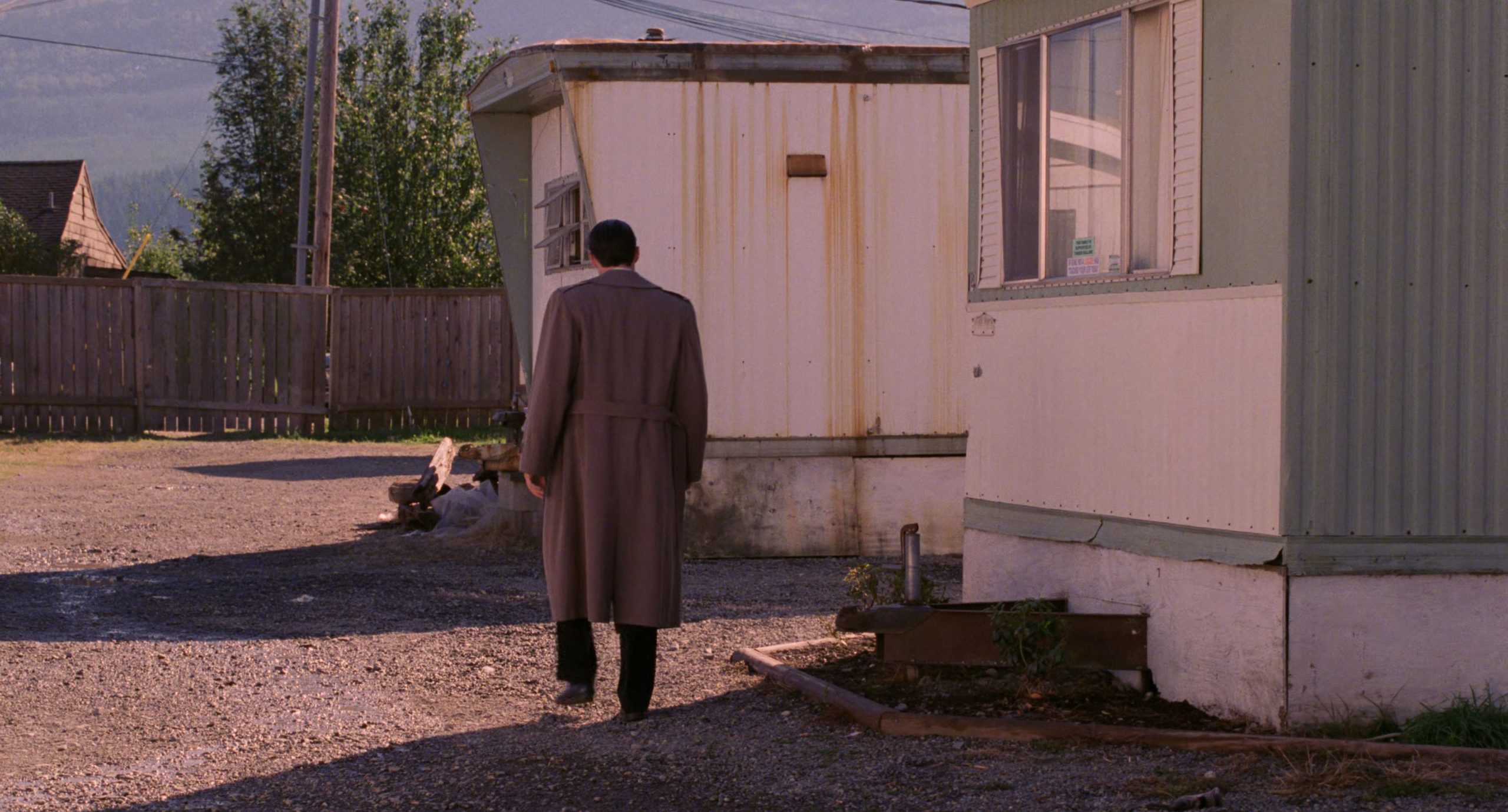 Agent Dale Cooper walking by trailer homes