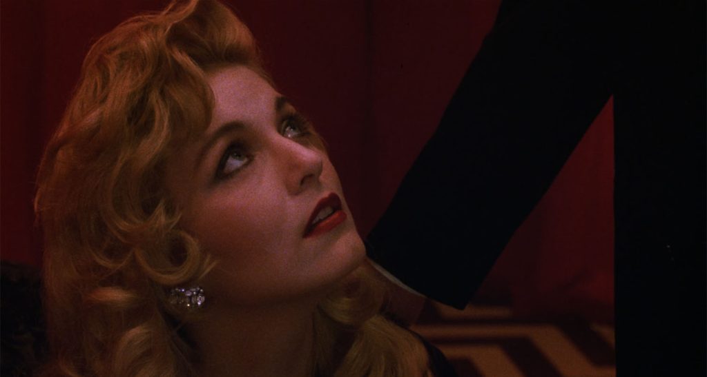 The ending to David Lynch’s Twin Peaks: Fire Walk With Me is incredibly beautiful. Laura Palmer weeps for joy upon seeing her angel as the stalwart Special Agent Dale Cooper stands by offering comfort. On-set photographer Lorey Sebastian captured moments from this ending in a series of publicity photos. This time, I’m looking at photo slide #5343 with a portrait of Laura Palmer and Dale Cooper in the Red Room.