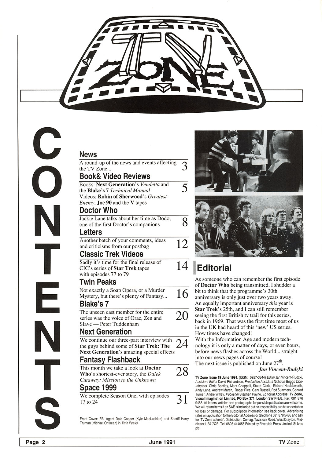 TWIN PEAKS IN ‘TV ZONE’ MAGAZINE FROM JUNE 1991 | PAGE 2 | CONTENTS