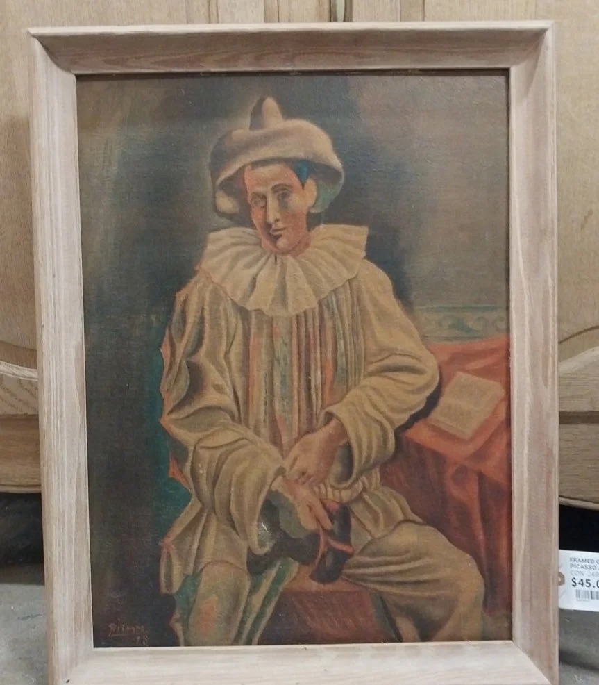 By Shelly and Bobby didn’t hang an original Picasso above Leo’s bed. Most likely, it was a low-cost reproduced print once offered in newspapers from the 1950s. This advertisement in the San Angelo Evening Standard on Feb. 18, 1959 offered readers the option to purchase a reproduced “Pierrot” for $2-$3.
