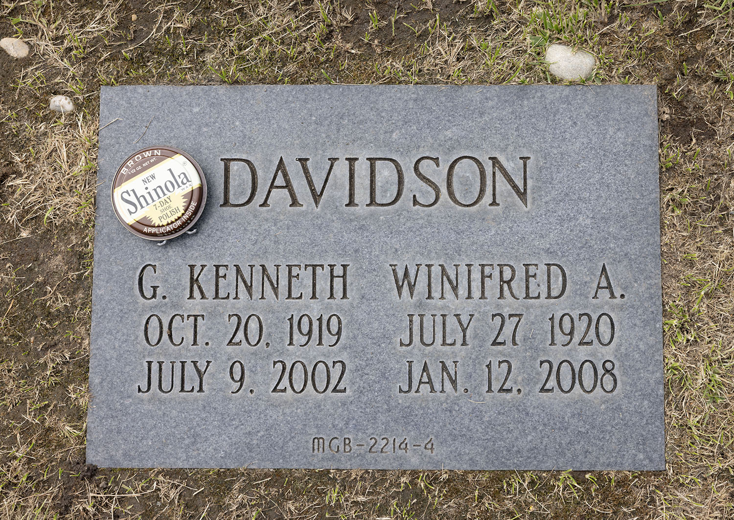 Davidson headstone with can of Shinola