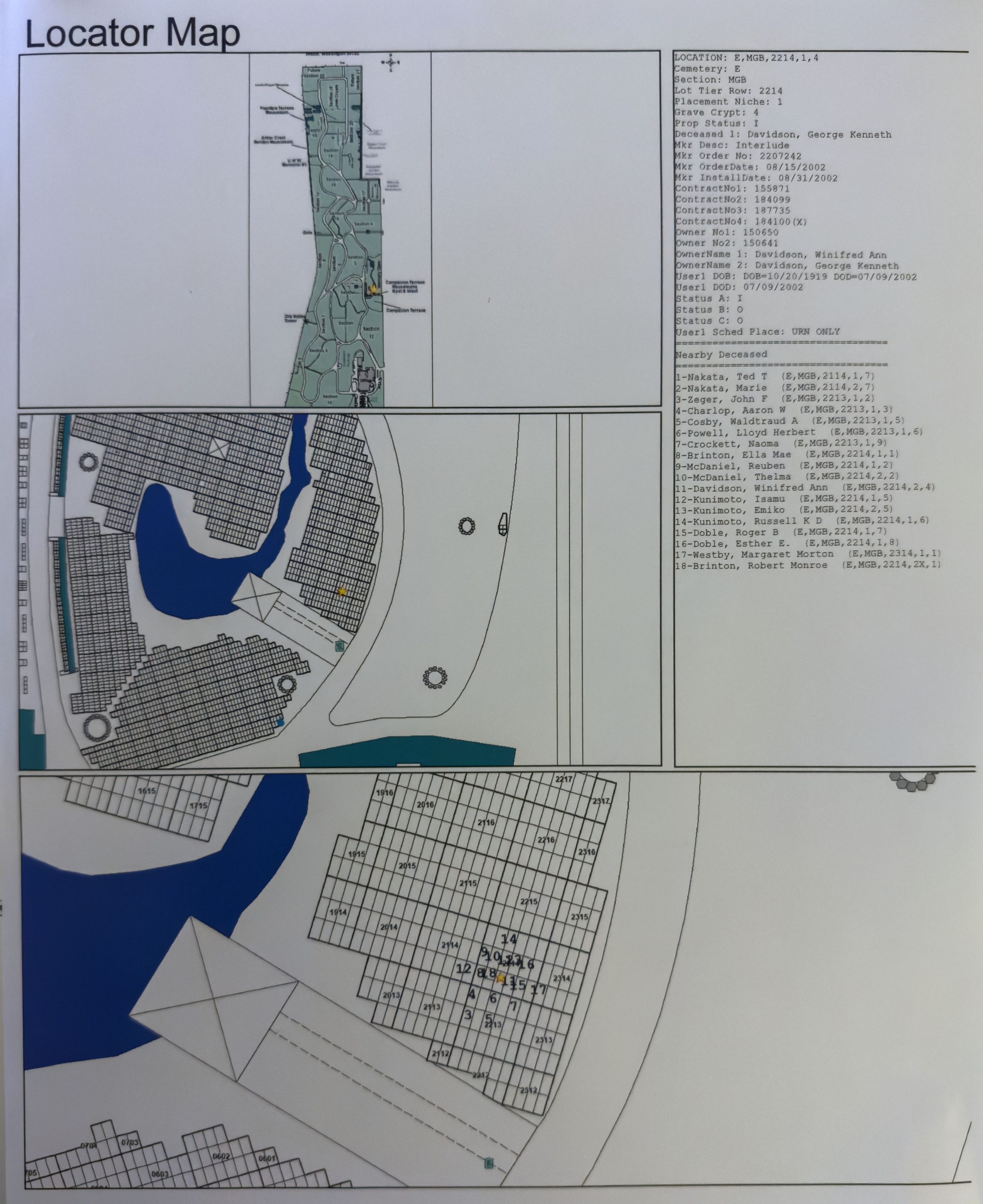 The office even provided a locator map with specific headstones and adjacent names. I was impressed with the level of detail and their willingness to help me.
