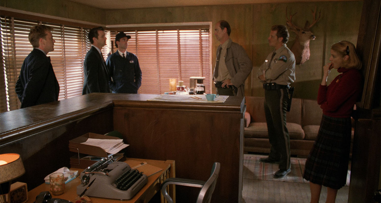 Butts’ “Log Jam” only appears during the first scene at the Deer Meadow Sheriff’s Department. When Agents Desmond and Stanley return to the office to take Teresa Banks body back to Portland, they are met with resistance from Sheriff Cable. I found it interesting that Cable blocks Butts’ print during this scene, which implies a different kind of “log jam.”