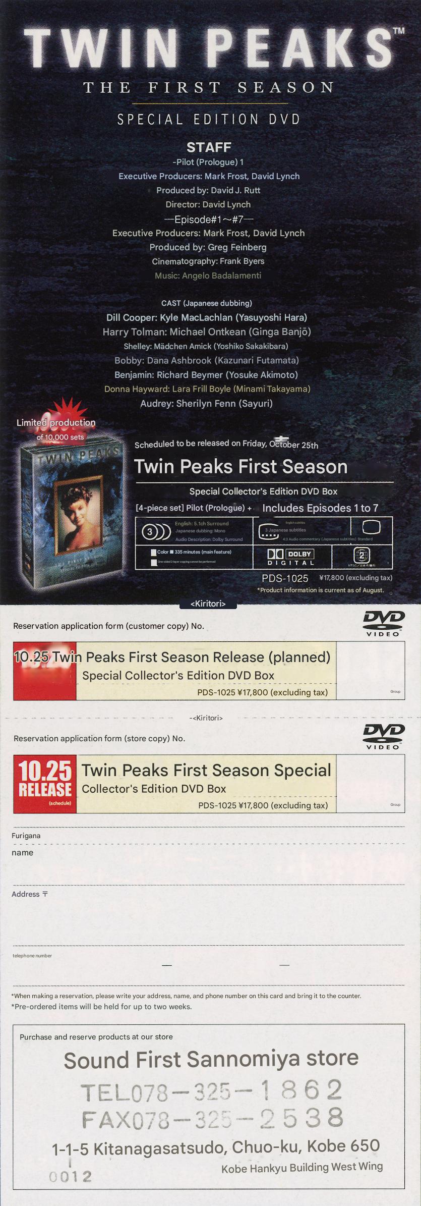 JAPANESE FLYER FOR ‘TWIN PEAKS – THE FIRST SEASON’ ON DVD FROM 2001 | BACK