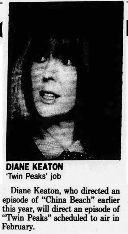 Even when Twin Peaks wasn’t showing new episodes, news about Keaton appeared in papers thanks to syndicated services like Knight-Ridder News Service.