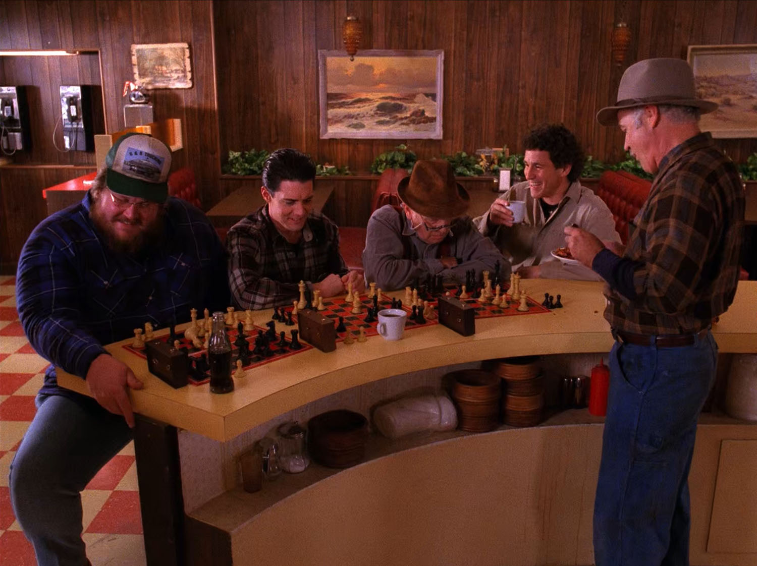 Later in that episode, Pete Martell plays chess against Sheriff Truman, Doc Hayward, Dale Cooper and Toad, the latter whom is wearing a different hat (probably because Bobby took his PLS cap).