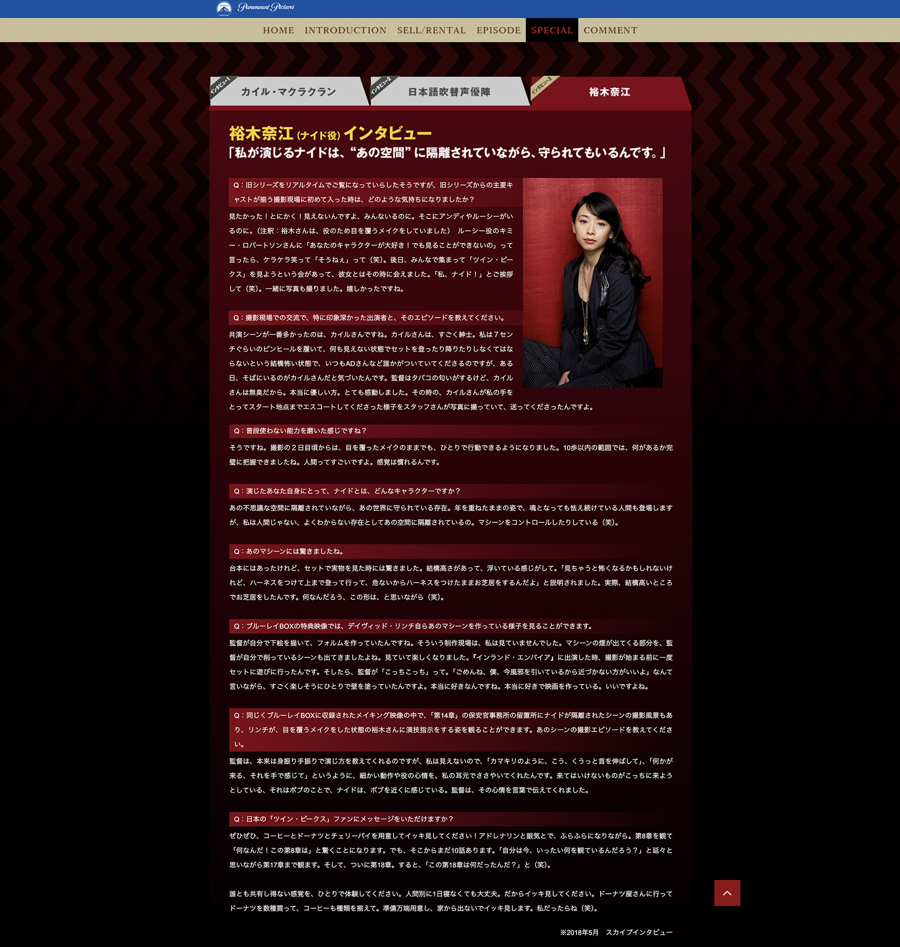 INTERVIEW WITH NAE YUUKI FROM MAY 2018 ABOUT NAIDO FROM TWIN PEAKS: THE RETURN