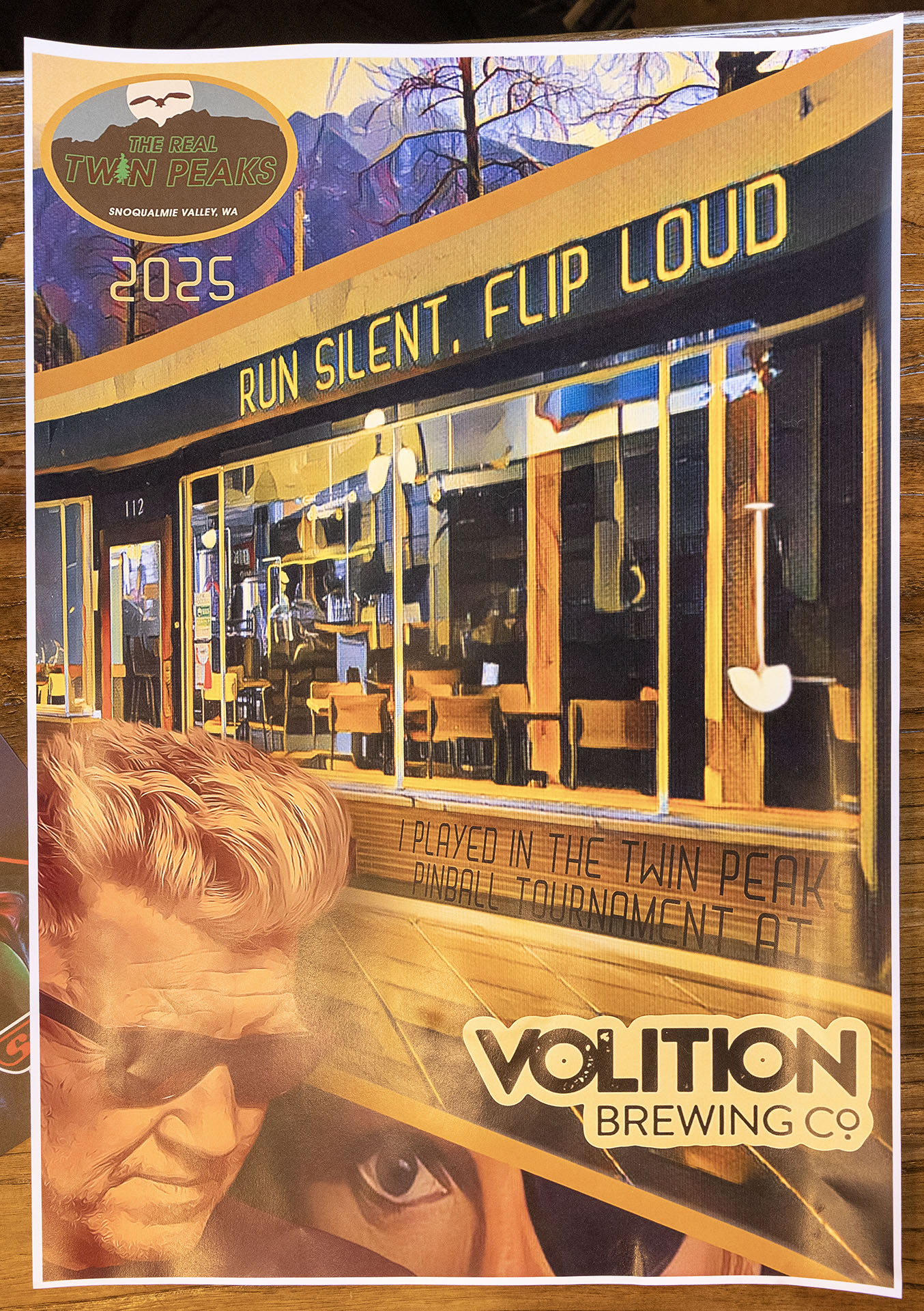 Participants in the pinball tournament received a poster with the Real Twin Peaks logo and artwork inspired by the location. It’s is a slightly updated poster to the one offered in 2024 with an image of David Lynch found in the bottom left corner.