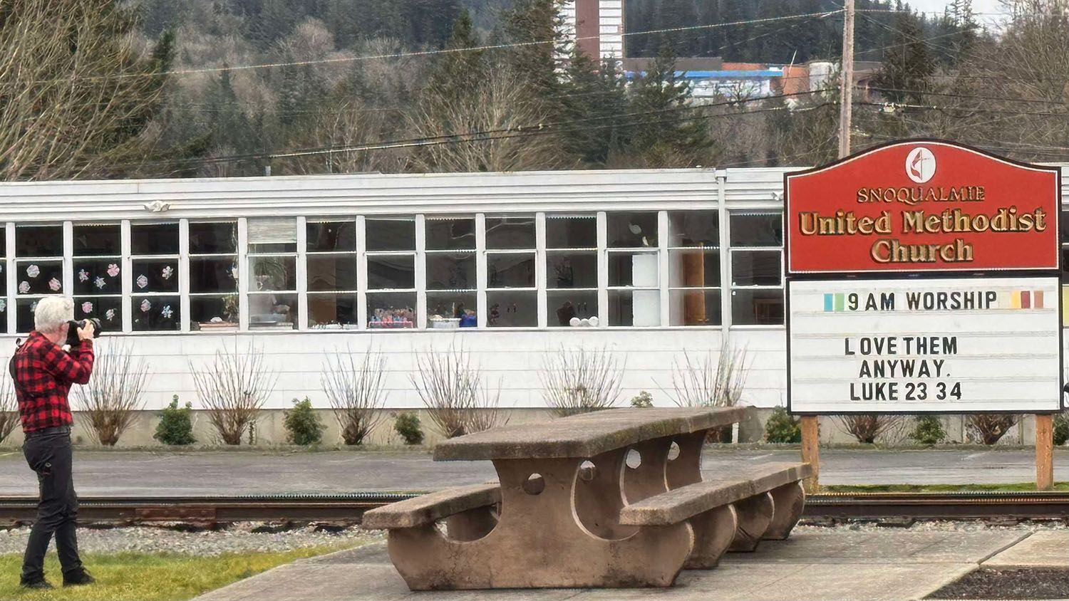 Before going inside, I snapped this photo of the Snoqualmie United Methodist Church as I liked the phrase posted on their announcement board – “Love them anyway.” I felt it was akin to Gordon Coles’s now iconic “Fix your hearts or die” phrase uttered during the show’s third season.