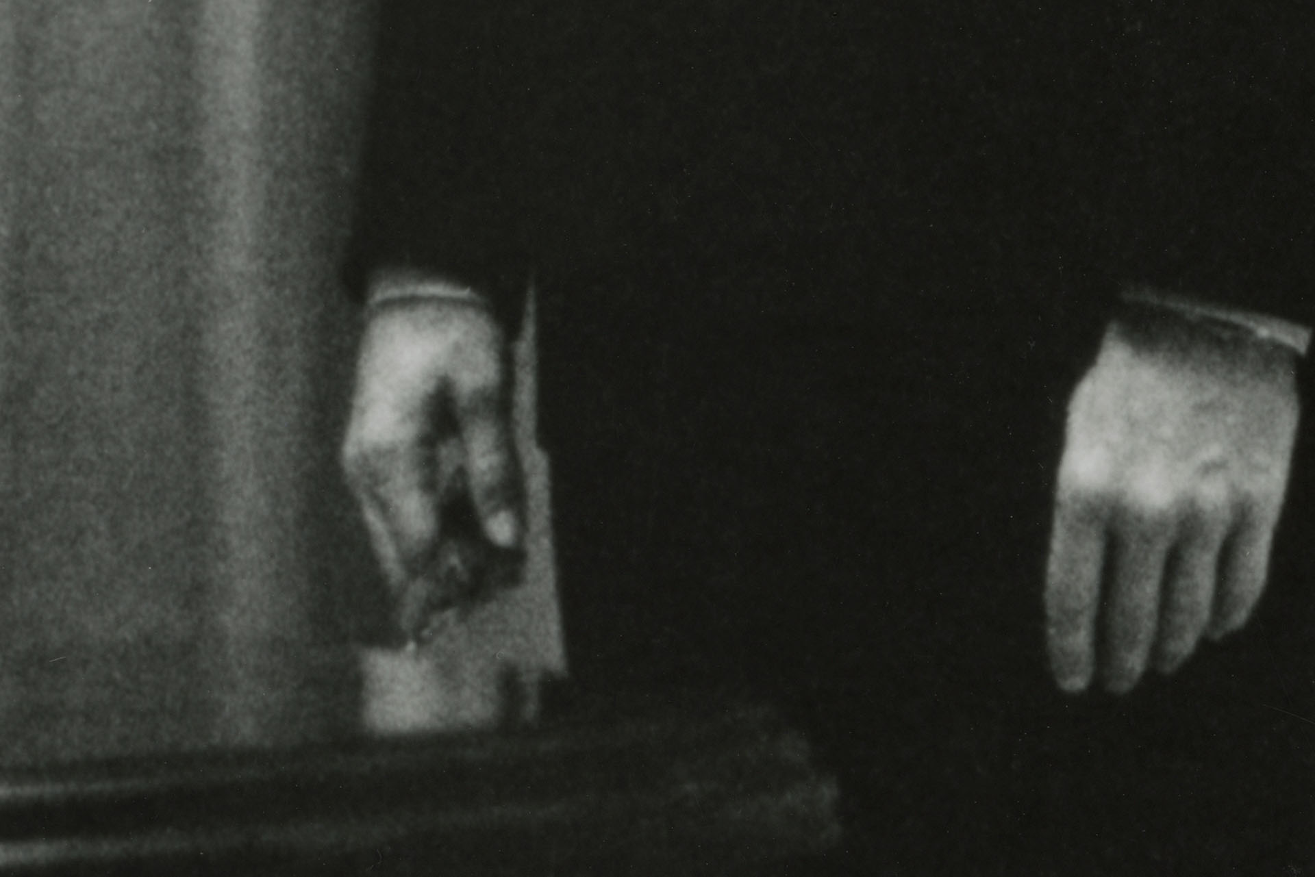 While looking at this image, I spotted something in Dale Cooper’s right hand. It appears to be something clinched between his fingers and thumb.