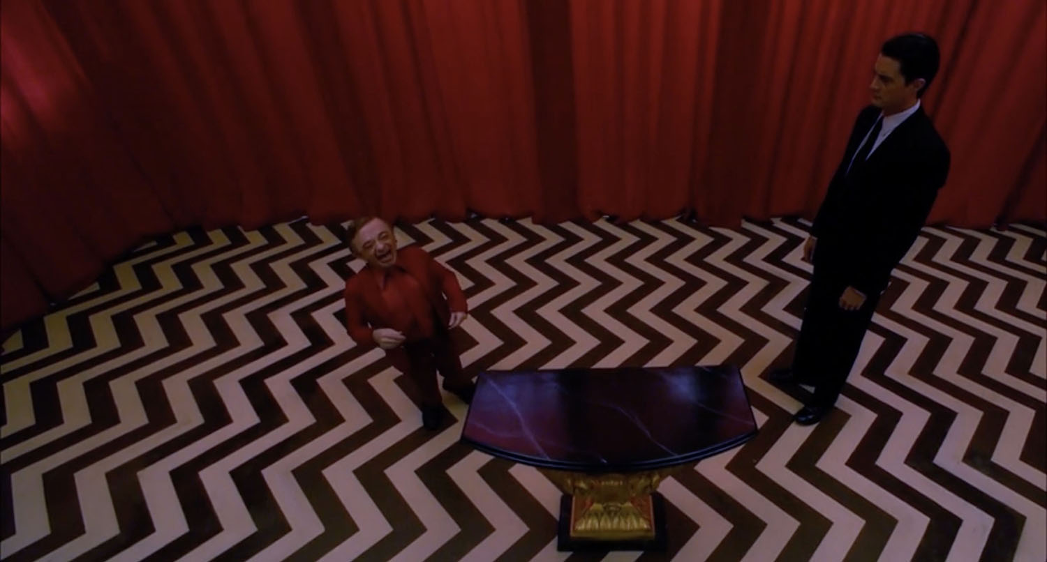 DALE COOPER AND THE LITTLE MAN FROM ANOTHER PLACE IN THE RED ROOM