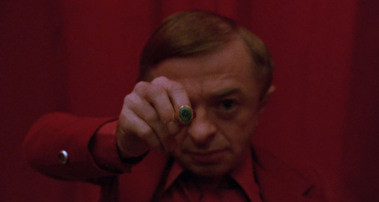 The Man from Another Place picks up the ring and moves it very close to us. We recognize it as Teresa Banks’ ring. The symbols on the ring are identical to the symbols of Owl Cave.