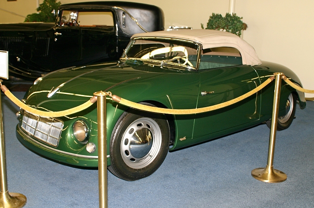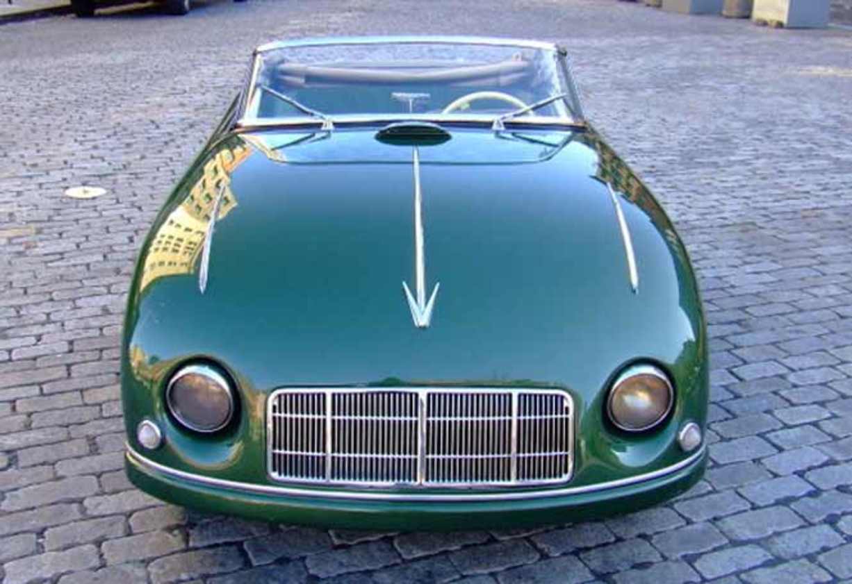 In October 1988, Waibel recalled building the sport cabriolet on a Volkswagen chassis in 1948 and 1949. His designed was “inspired by the early Porsche prototypes.” The wraparound windshield was made to order by Securit of Geneva which wouldn’t be seen on Porsche cars until 1953. The one-off, all-aluminum body featured “suicide doors, style rear fender skirt and a Morris Minor front grille.” Waibel recalled painting the car a “metallized green that had an almost emerald hue.”