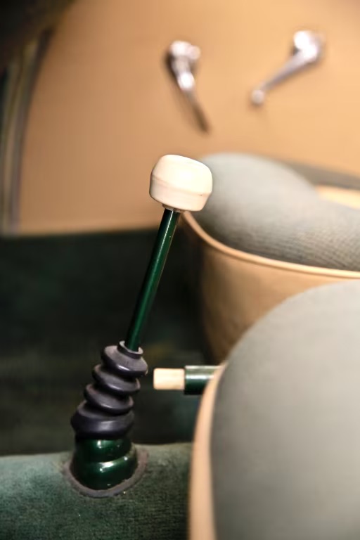 Parts of the interior, such as the gear shift and carpeting, kept the original green coloring.