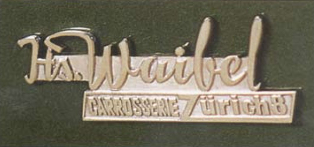 In May 1986, Waibel’s son, Hans S. Waibel Jr. of Waibel Works AG Zurich wrote that his father had built the car on a “Volkswagen chassis fitted with a Porsche motor.” A serial number – 1-085552 – was found stamped in the engine compartment on the right side of the floor pan. Porsche historian and author Karl Ludvigsen noted “several chassis were delivered to Von Senger without bodies. Thus it is entirely possible that one of these chassis was bodied by Mr. Waibel from a chassis provided by Porsche.”