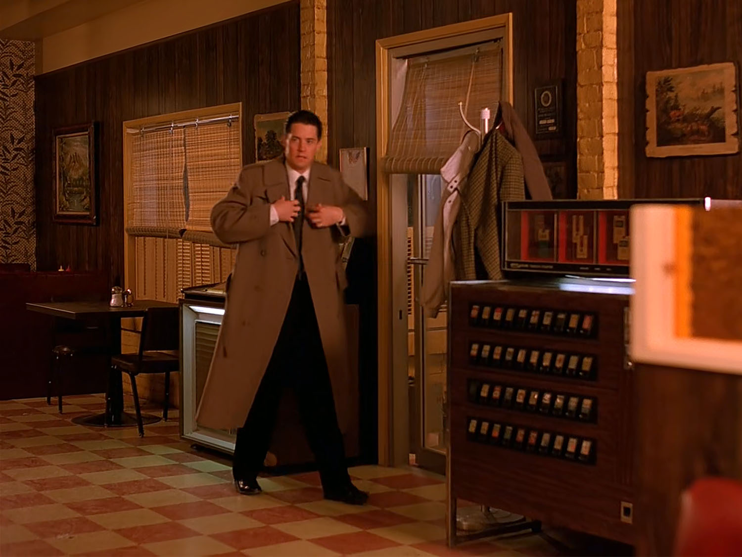 The scene never actually happened in the show – Cooper and Audrey didn’t interact at the Double R Diner. In fact, the only time Audrey Horne appears at the diner is in episode 1.002 where she dances to “dreamy music.”