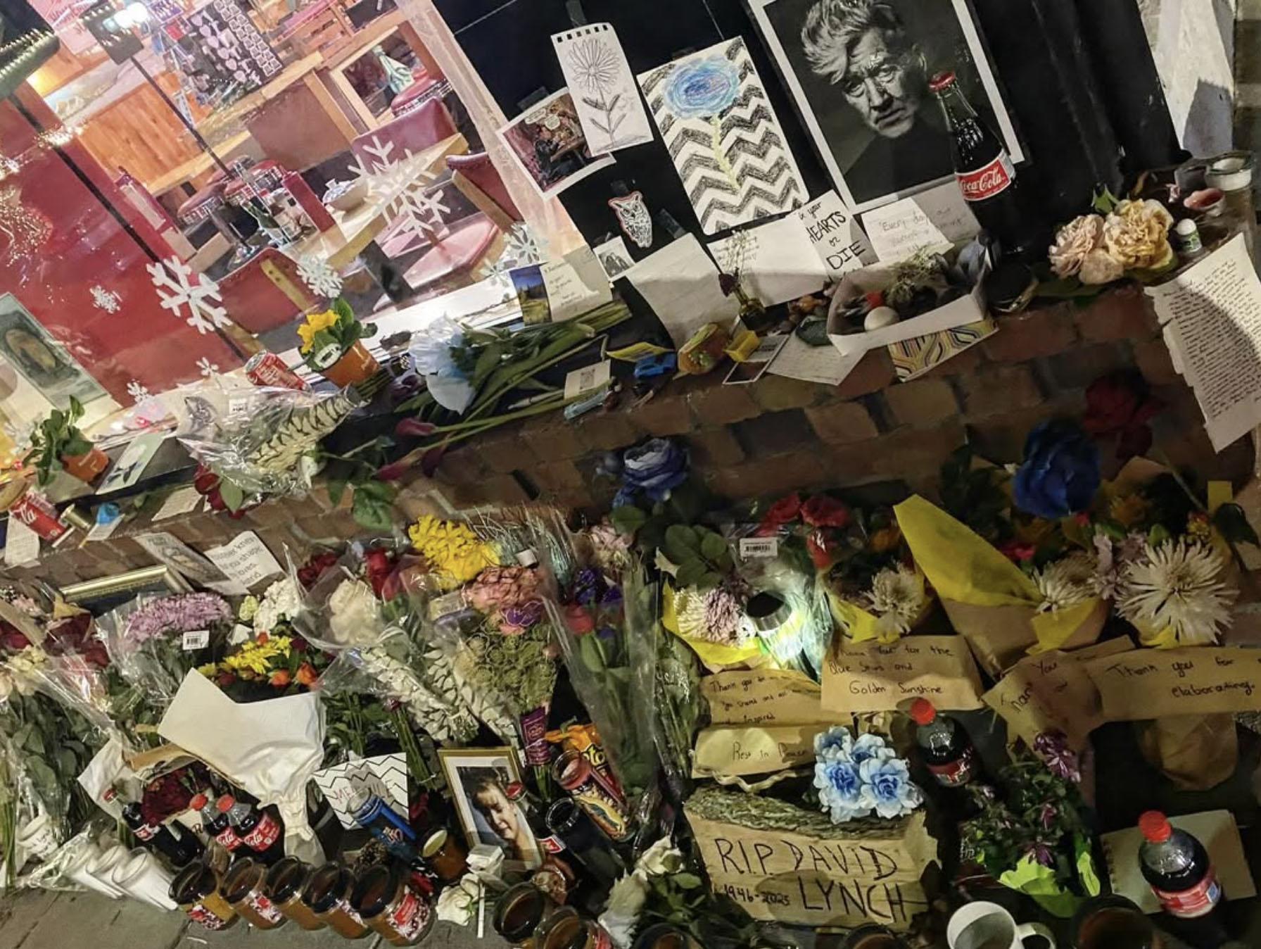 Memorial outside Twede's Cafe for David Lynch's passing