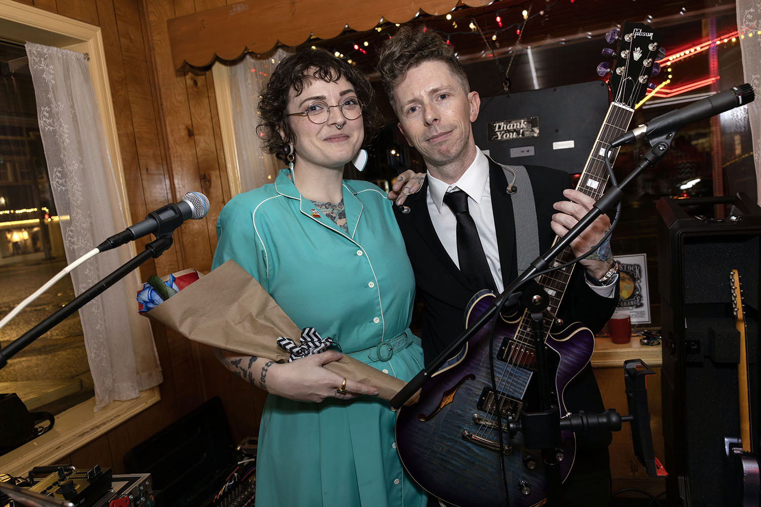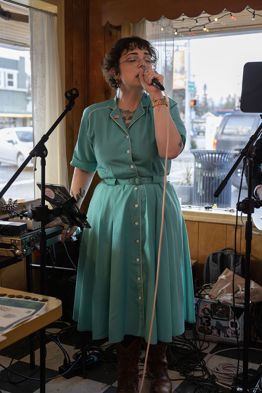 Lady K from Wisteria Lodge singing at Twede's Cafe in North Bend, Washington