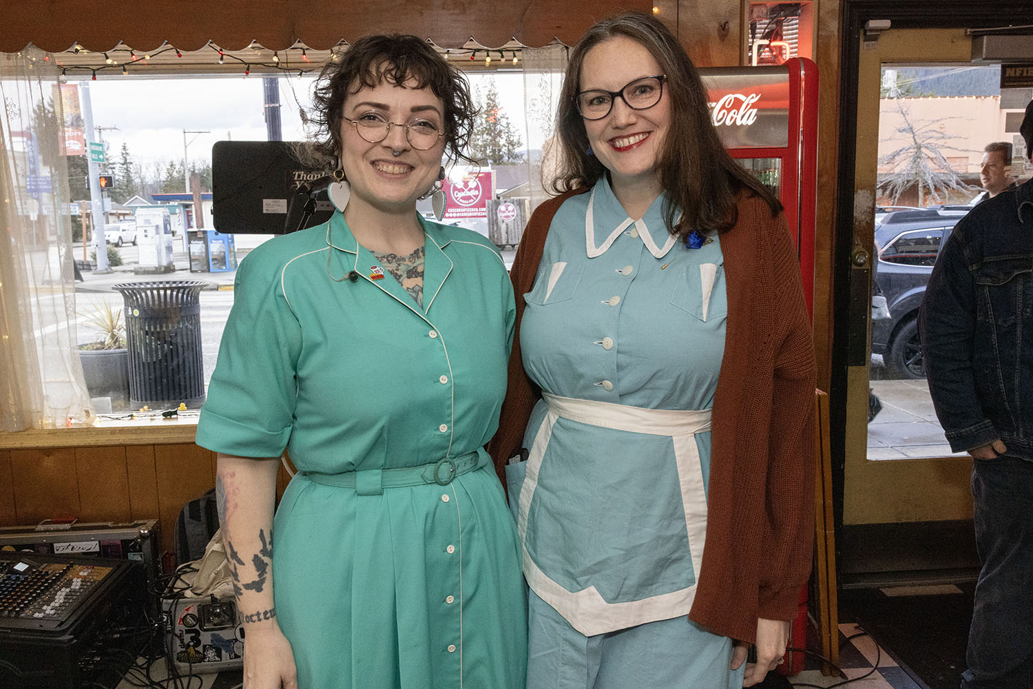 Lady K and Laura in Double R Diner waitress uniforms