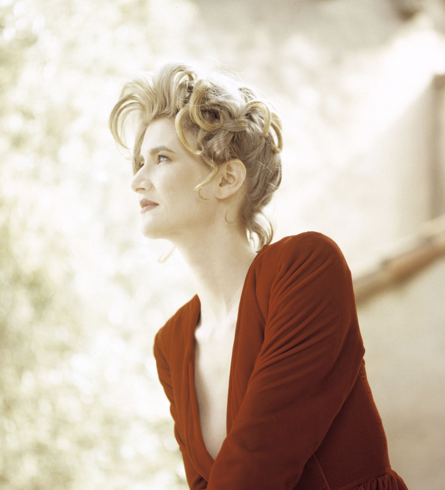Laura Dern sporting a red dress.