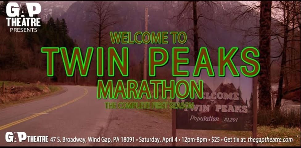On Saturday, April 4, the Gap Theatre, located at 47 S. Broadway in Wind Gap, Pennsylvania, invites you to step into the mystery with a Welcome to Twin Peaks Marathon — featuring the complete first season of Twin Peaks. Created by David Lynch and Mark Frost, this groundbreaking television phenomenon changed the medium forever. What begins with the discovery of homecoming queen Laura Palmer’s body unfolds into a surreal, hypnotic journey through small-town secrets, supernatural shadows, damn fine coffee, and some of the most unforgettable characters in TV history.