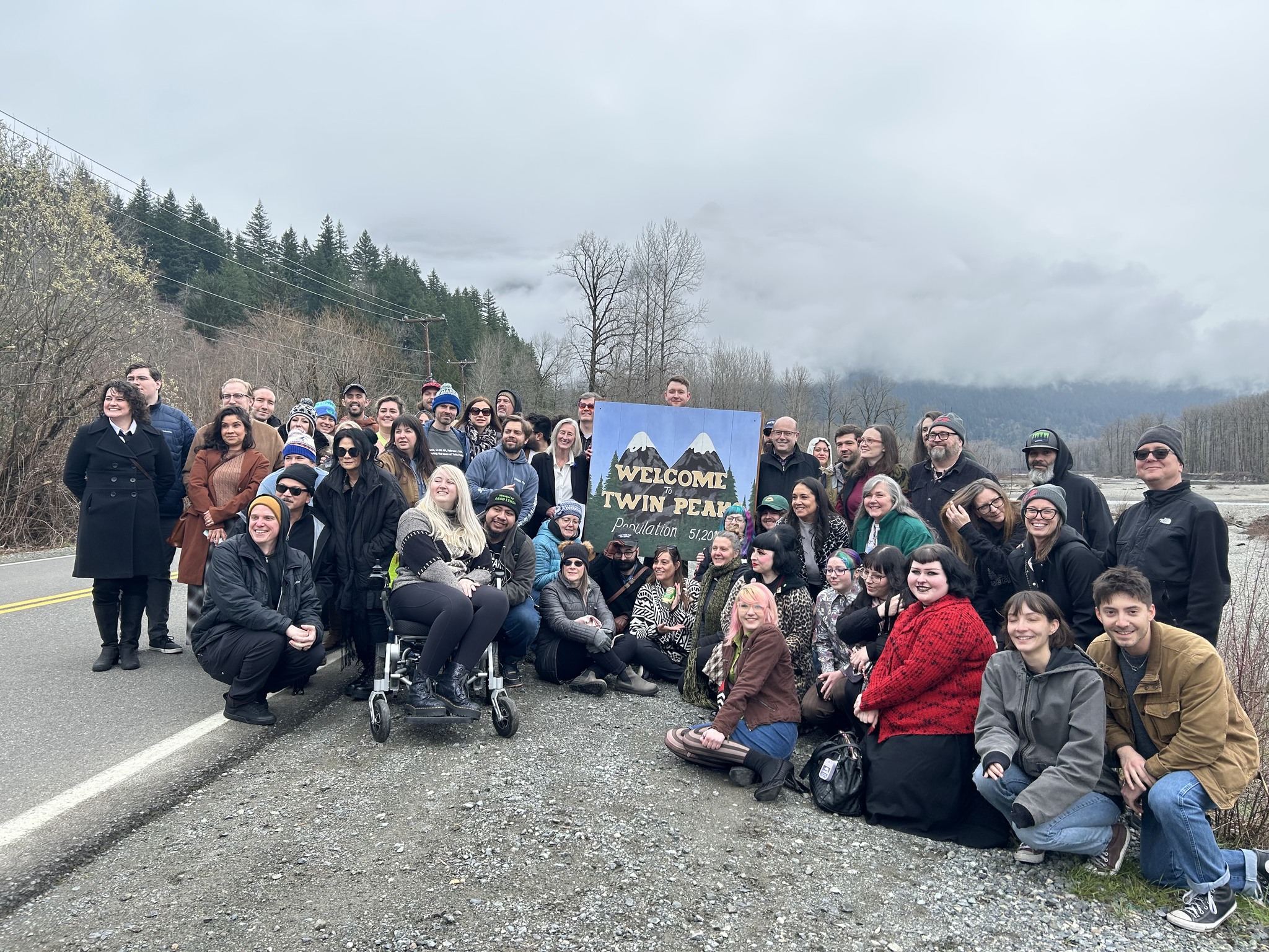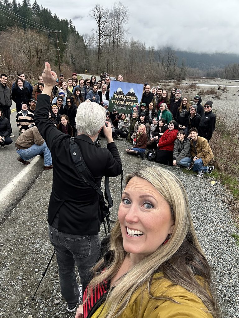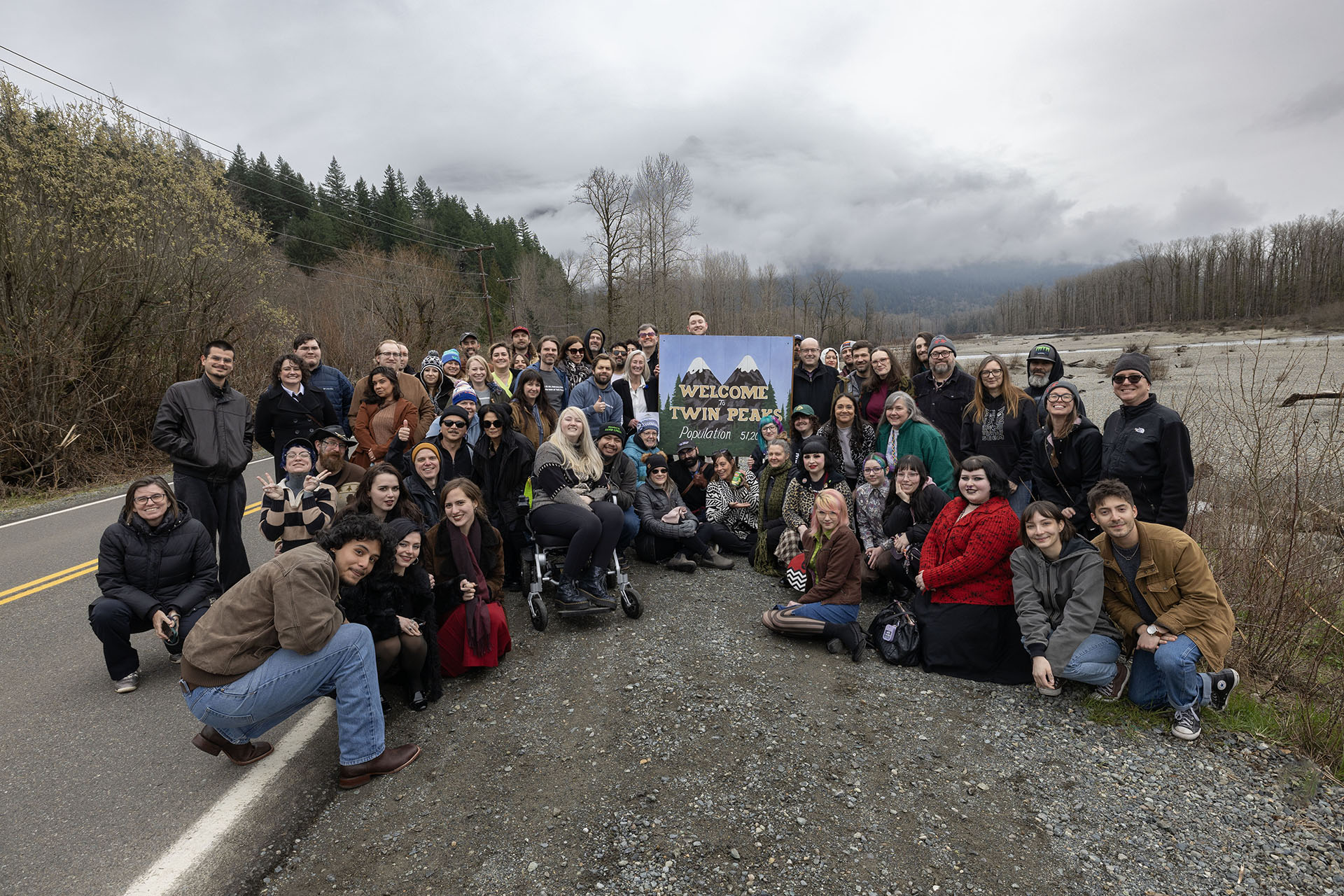 I ten gathered everyone around the Welcome to Twin Peaks sign for a large group shot.