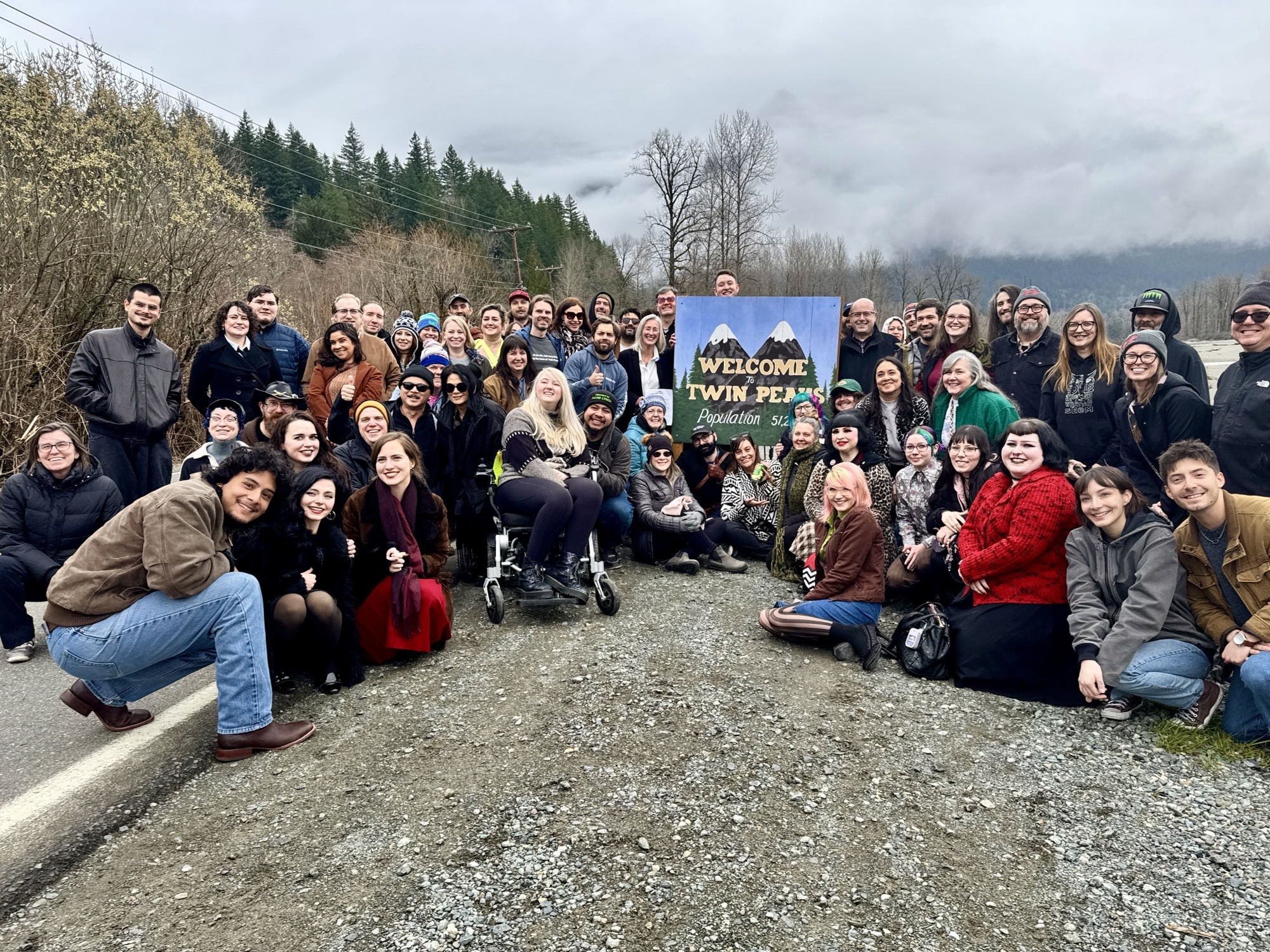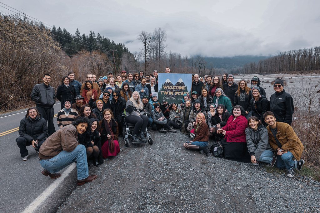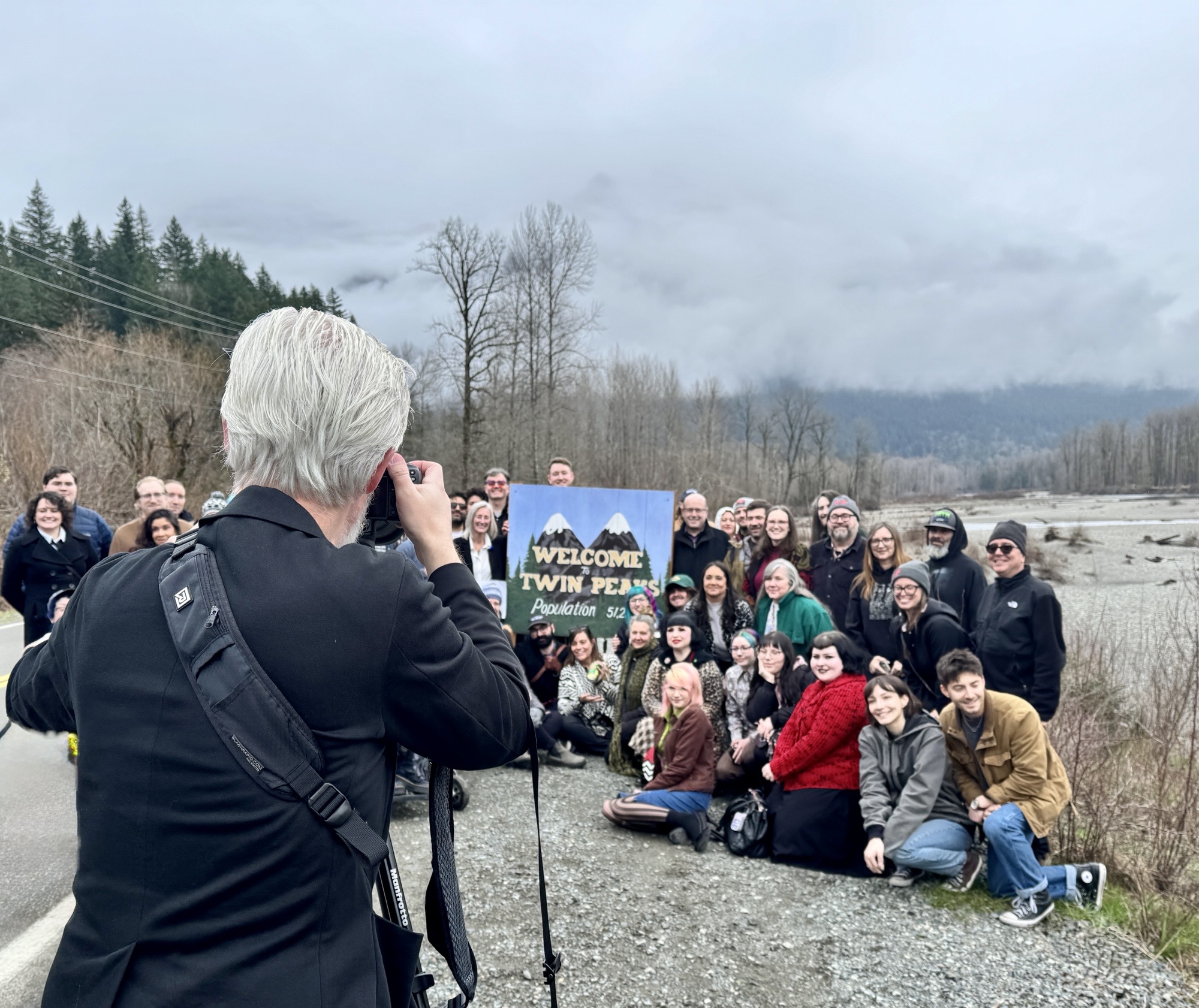 I ten gathered everyone around the Welcome to Twin Peaks sign for a large group shot.