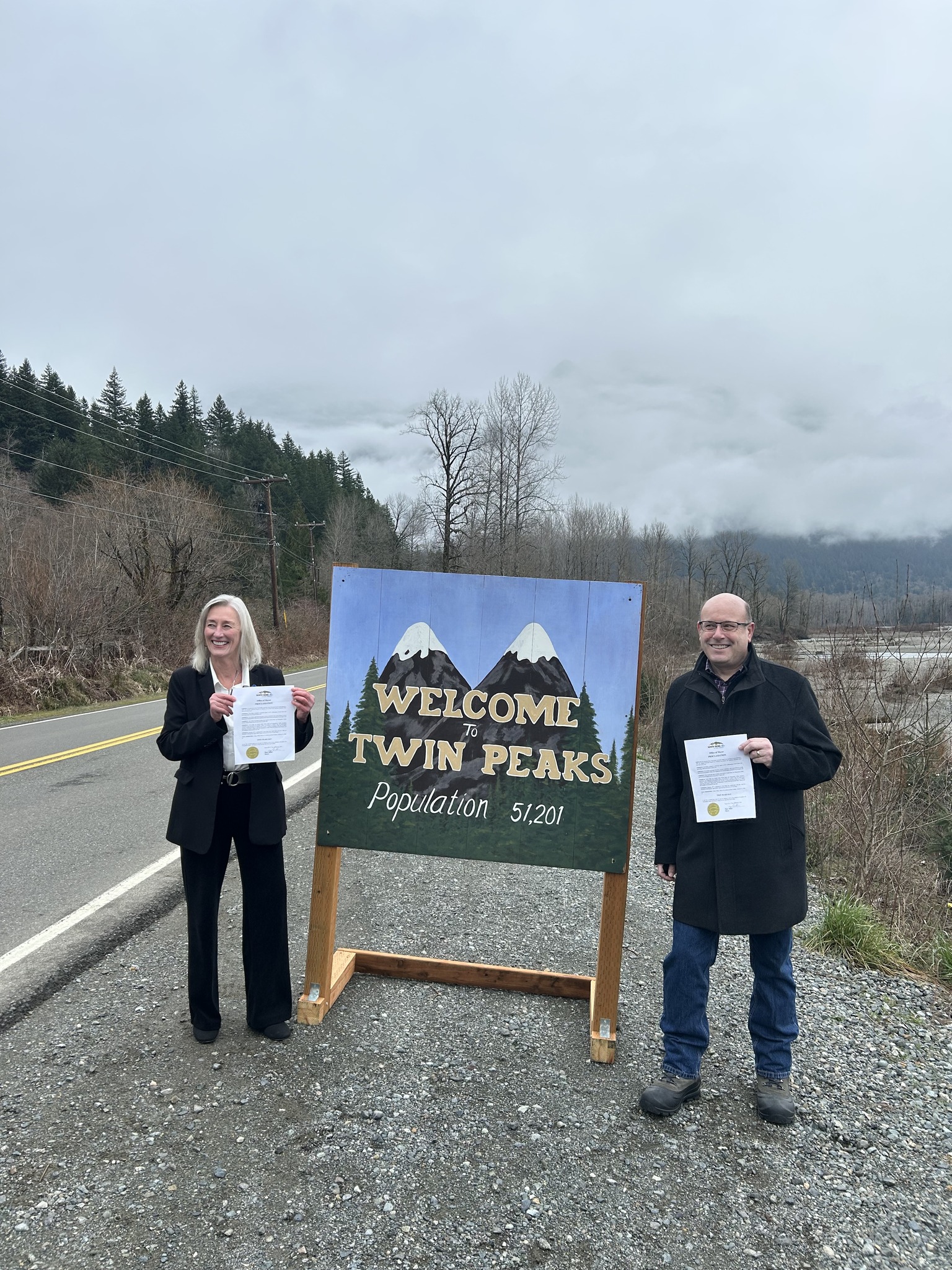 Thank you to the Mayors of Snoqualmie, North Bend and Carnation for joining in Twin Peaks Day fun. I also thank Karl Reinsch for offering to write the proclamations every year which are such a unique thing for the Real Twin Peaks of Snoqualmie Valley.