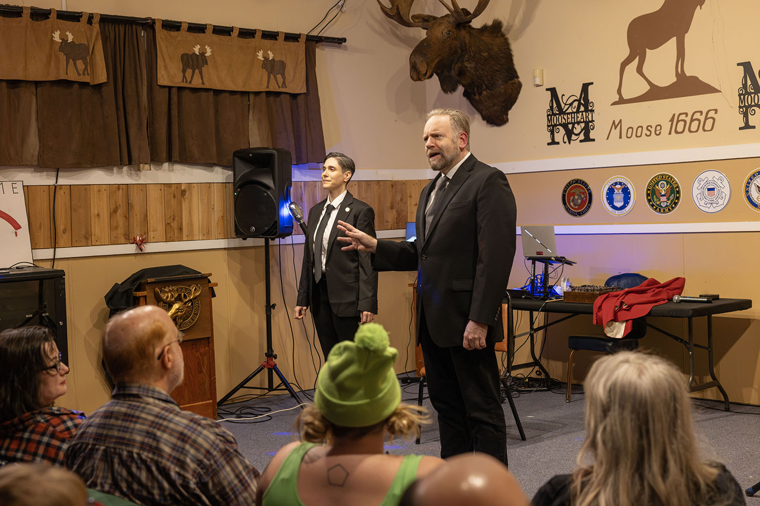 After a full day of activities on Friday February 20, 2026, Real Twin Peaks Dugpa(SS) ticket holders gathered at the Moose Lodge 1666 for an evening of improv by Seattle’s Unexpected Productions followed by karaoke hosted by KJ Dwaine Wheeler. It was a wonderful (and strange) night of laughter, song and friendship in Snoqualmie Valley.