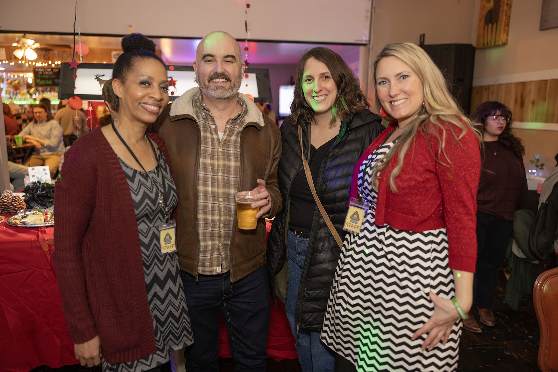 That night at the Moose Lodge, the cast included (left to right) Michael Bils, Lindsay Grimm, Greg Stackhouse, Tony Beeman and Ari Scheller (They/Them). Their director (not pictured) was Liz Brammer. They dressed as characters from Twin Peaks including Ben Horne, Donna Hayward, Dr. Jacoby, Gordon Cole and Dale Cooper.