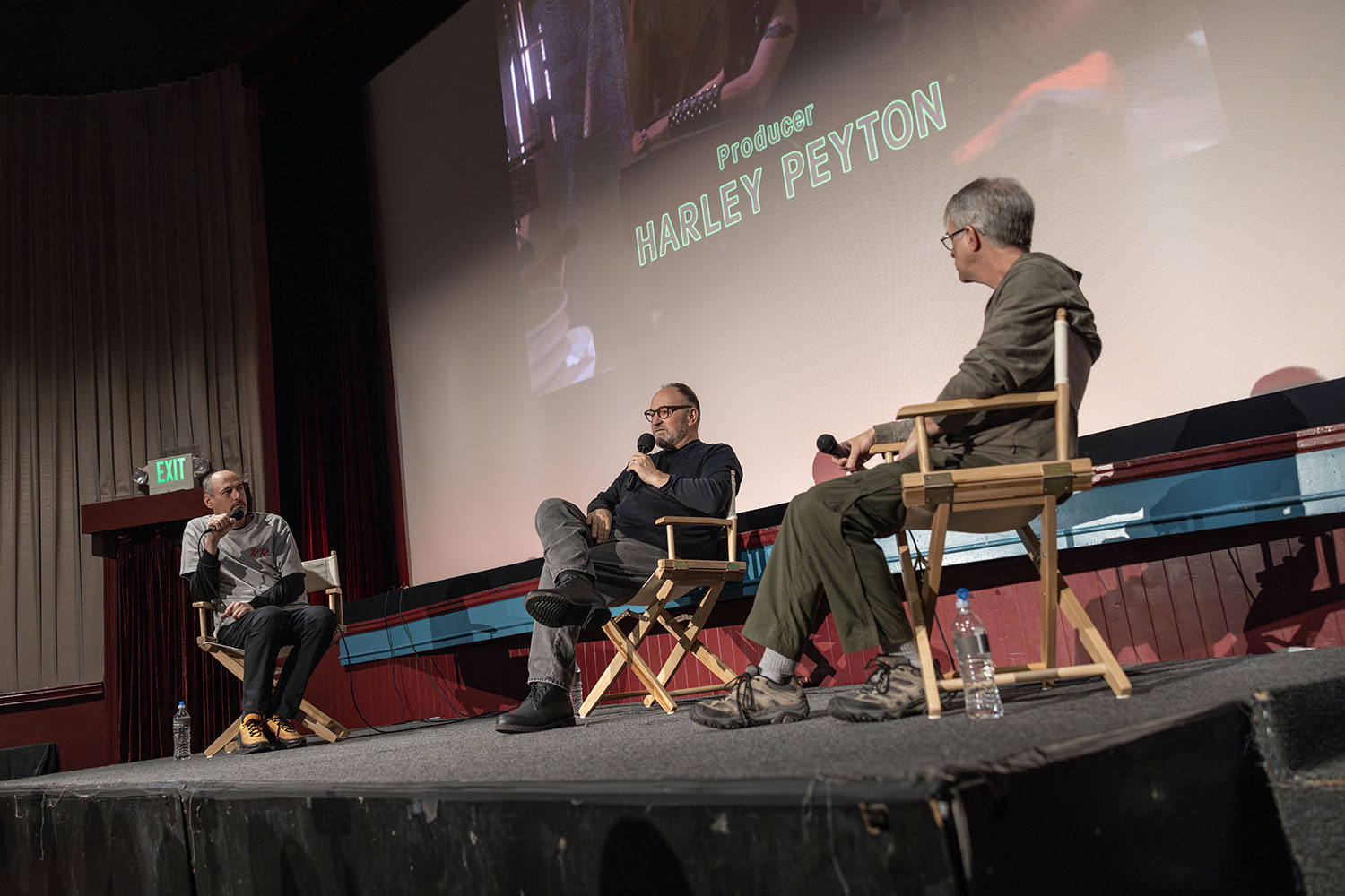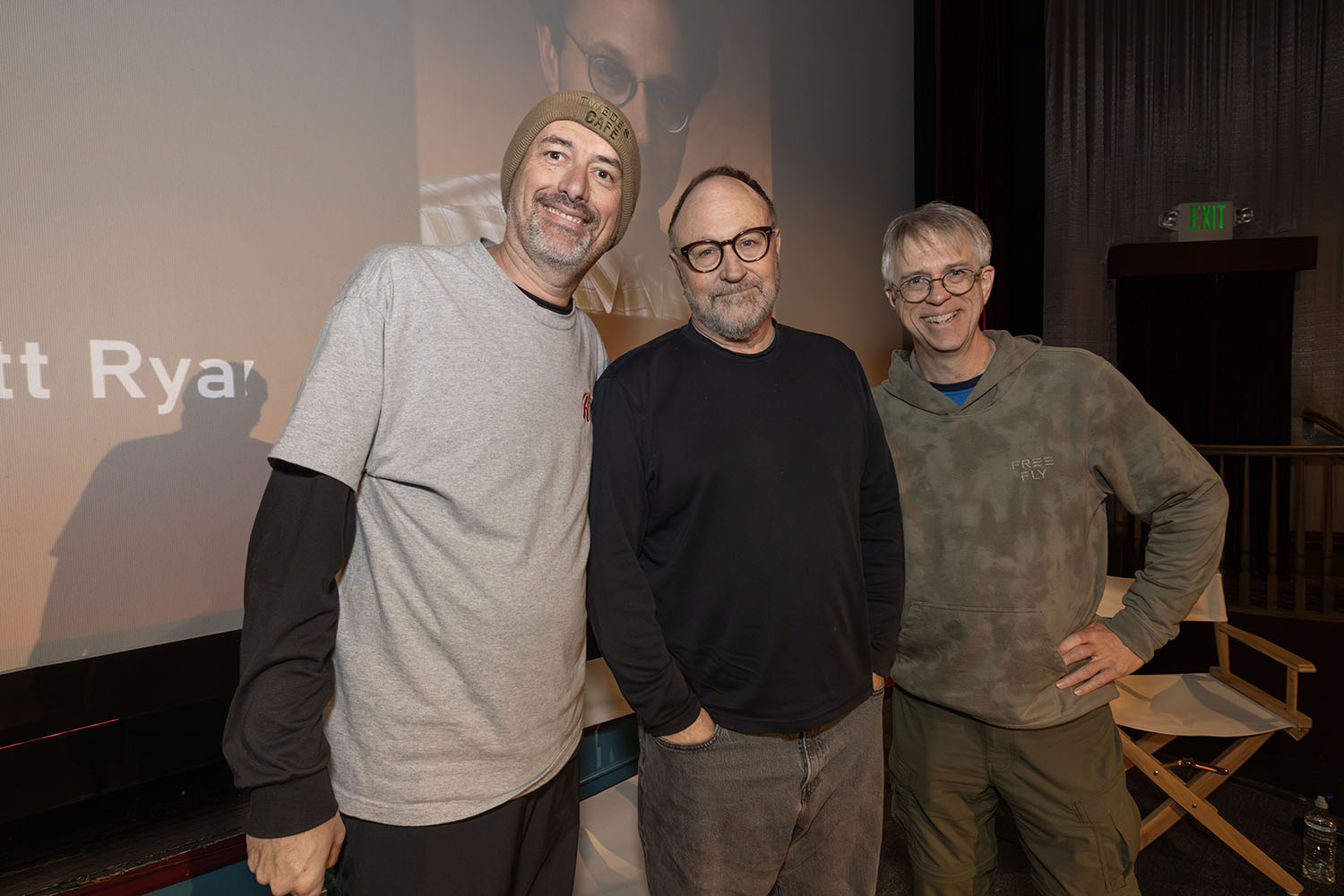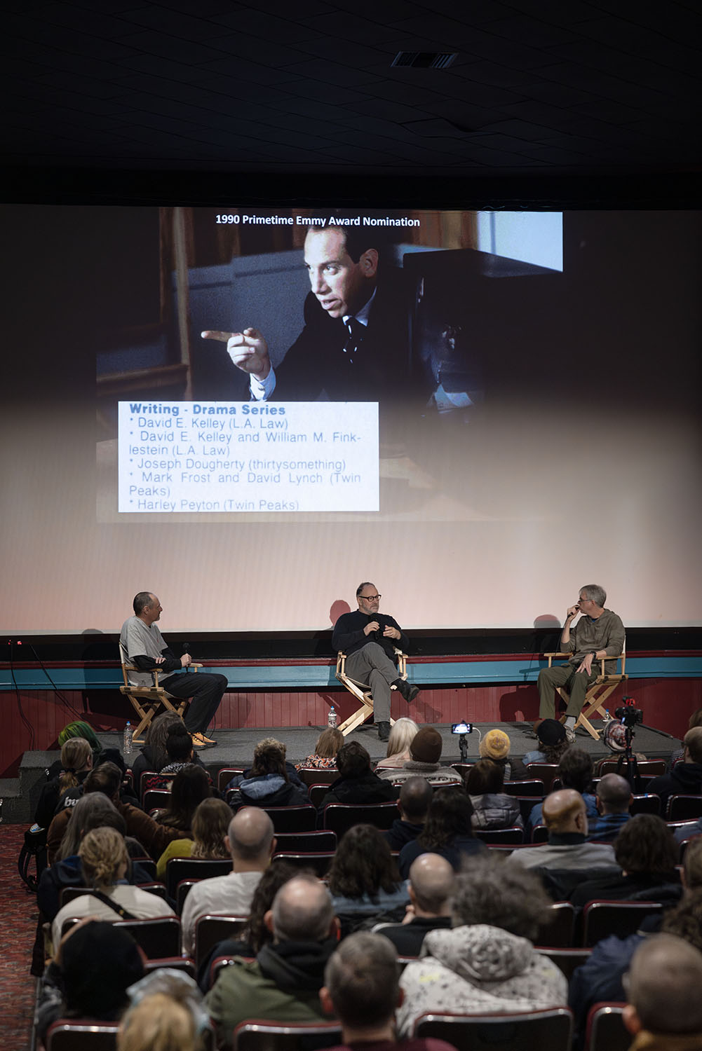On Saturday, February 21, 2026 from 11:00 a.m. to 12:00 p.m., hundreds of Twin Peaks fans attended the Conversation with Harley Peyton at the North Bend Theatre located at 125 Bendigo Boulevard North, North Bend, Washington. Authors Scott Ryan (“Twin Peaks: Through the Red Curtain” and editor of “Blue Rose Magazine) and John Thorne (“Wrapped in Plastic” magazine, “Ominous Whoosh: A Wandering Mind Returns to Twin Peaks“). The trio spoke for about 40 minutes and then handful of attendees asked Harley questions about his experiences.