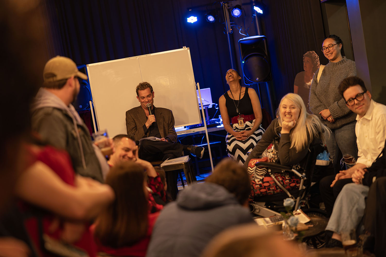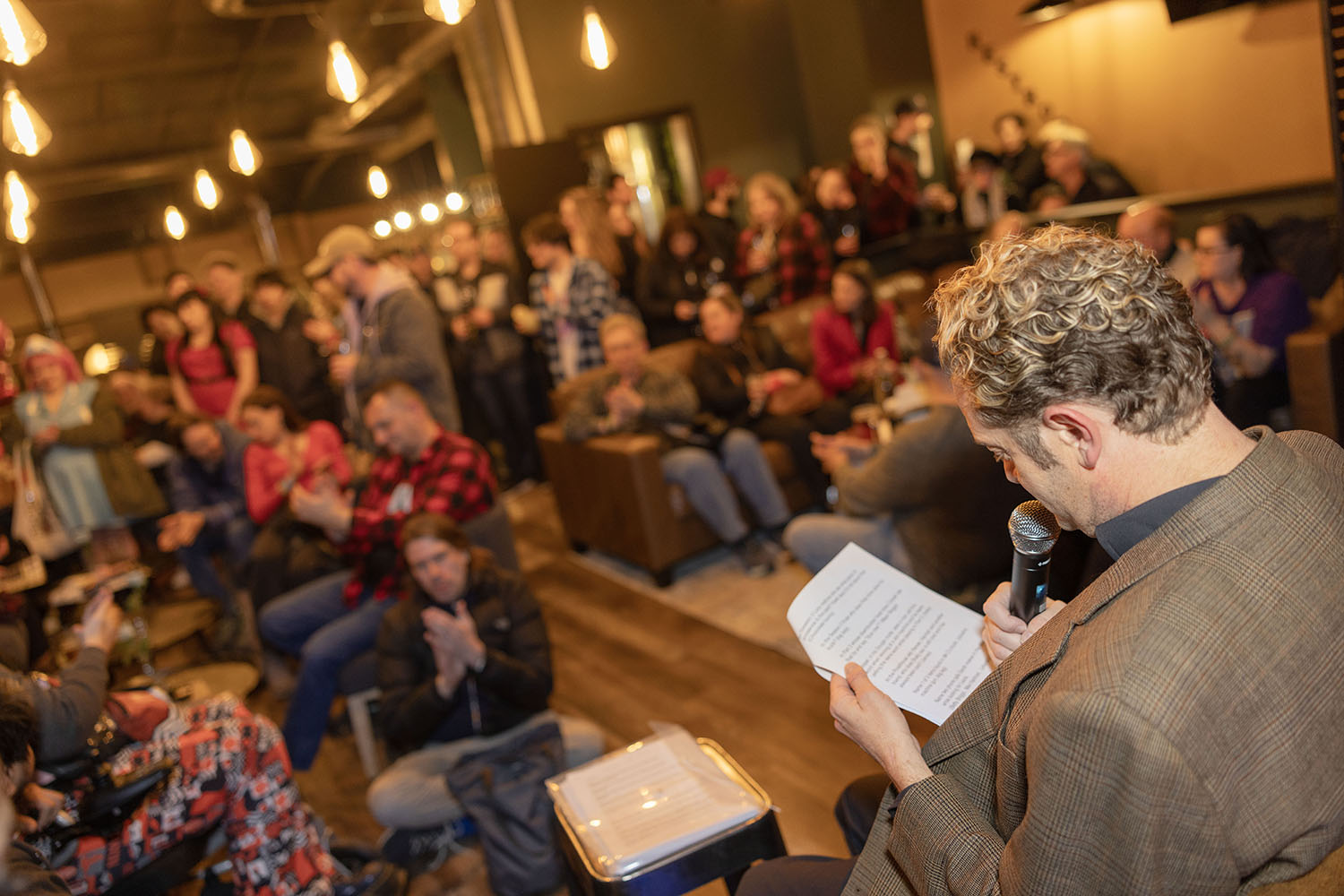 Even those seated on the couches, like Brian, had a turn to answer Josh. It was such a treat to see this many people gathered in one room, especially with some rather intense nighttime weather outside. You could hear the trees roaring as wind whipped through the branches.