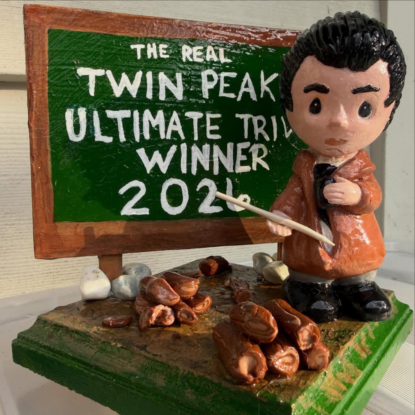 What an impressive trophy created by the talented Mary Hütter. It’s a nod to episode 1.002 where Special Agent Dale Cooper uses his powers of deduction (and a little magic) to narrow down a list of suspects.