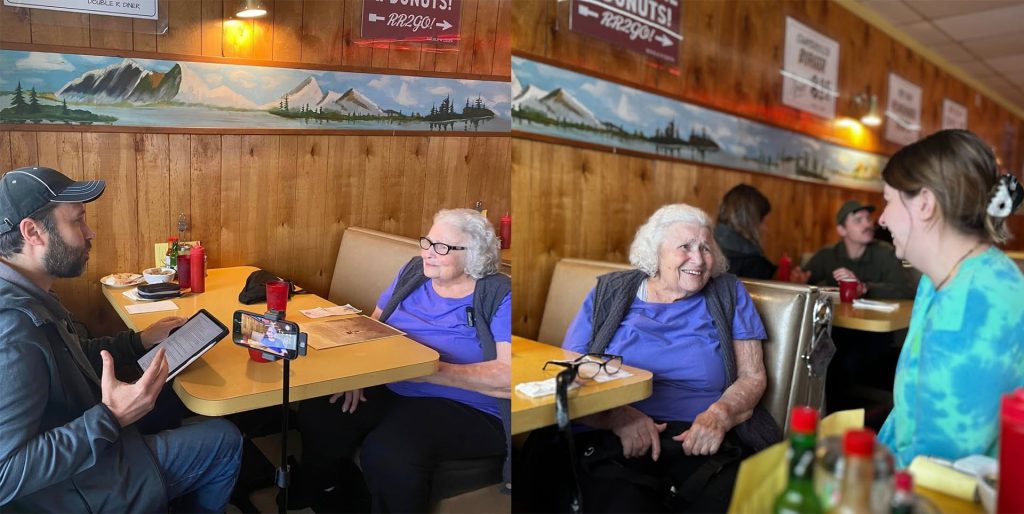 “We were planning our Neon Dream campaign and the sign lighting ceremony, and it meant a great deal to me to have Pat there,” explained Dugpa. “She graciously accepted. We met at Twede’s Cafe the day before the lighting, and she sat down with me for an interview for my documentary. Then at 92 years old, she was sharp as a whistle! She shared the full history of Thompson’s, the Mar-T, Twede’s, her pies and a number of stories I had never heard before. We talked for over an hour, and I feel incredibly fortunate to have captured those stories. I hope to share my documentary sometime next year.”